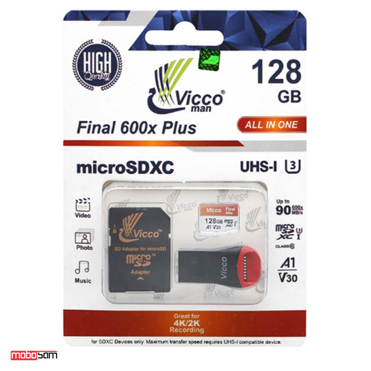کارت حافظه microSDHC ویکومن مدل Final 600X Plus کلاس 10 استاندارد سرعت 90MBps ظرفیت 128 گیگابایت + رم ریدر و خشاب SD
