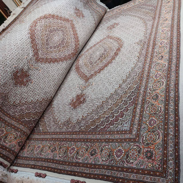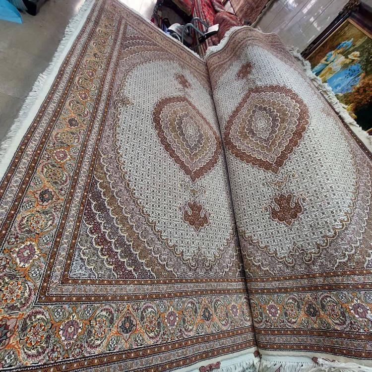 جفت ۶ متری دستبافت تبریز ریز ماهی گل ابریشم چسبیده بهم آکبند قیمت دو تخته باهم