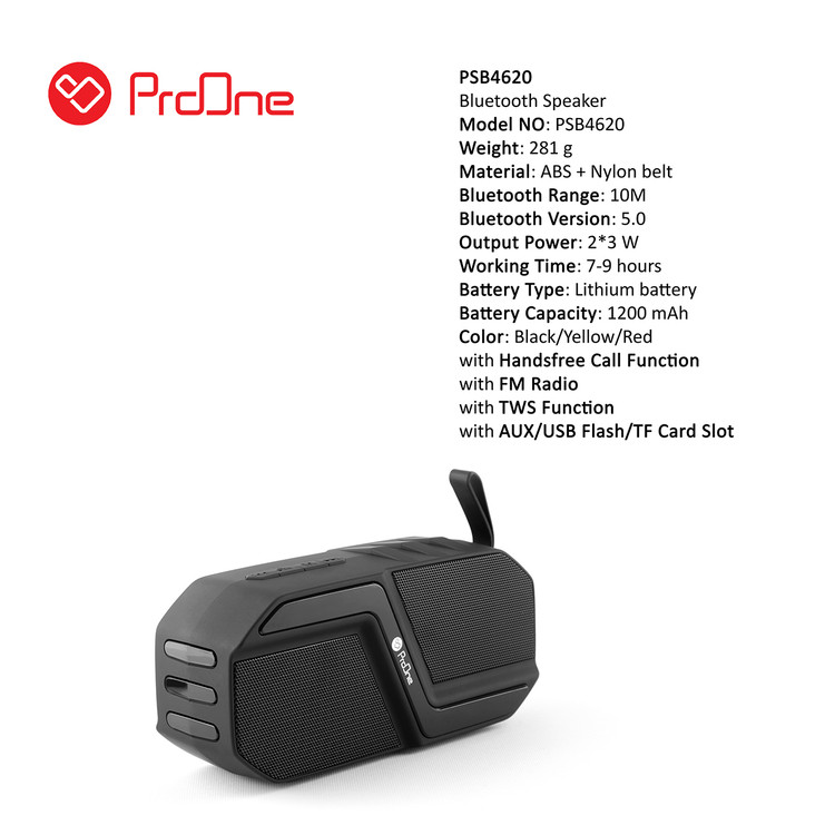 اسپیکر شارژی PSB4620 یکی از تولیدات خوب و باکیفیت شرکت پروان است. شرکت پرووان با ورودش به بازار جهانی به سرعت به یک شرکت قوی در زمینه تولید انواع محصولات دیجیتال تبدیل شد. کیفیت ساخت عالی محصولاتش در مقابل قیمت مناسب تولیداتش باعث شد علاقهمندان زیادی به خود جلب کند. این اسپیکر PSB4620 جذاب هم از طریق بلوتوث و هم از طریق کابل AUX کار میکند یا به عبارتی این محصول هم باسیم و هم بیسیم است. قابلیت پخش موسیقی از طریق فلش USB و رم میکرو SD، بلوتوث، کابل AUX دارد. دارای برد مفید 10 متر است و دیگر نگران قطع شدن موزیک در فواصل زیاد نباشید. روی این بلندگوی کوچک وقابل حمل دکمههایی تعبیه شده است که بدون نیاز به گوشی یا هروسیلهای که اسپیکر به آن متصل است بتوانید صدا را کم و زیاد کنید. تولید کننده این محصول حتی بندی برای این بلندگو تعبیه کرده است که در هنگام راه رفتن، در مچ دست قرار دهید یا برای آویزان کردن از این بند استفاده کنید.