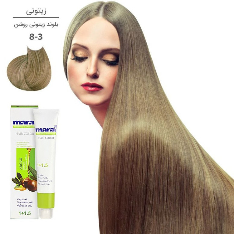 رنگ مو حاوی روغن آرگان و بادام سری زیتونی 100میل رنگ 8.3 بلوند زیتونی روشن مارال