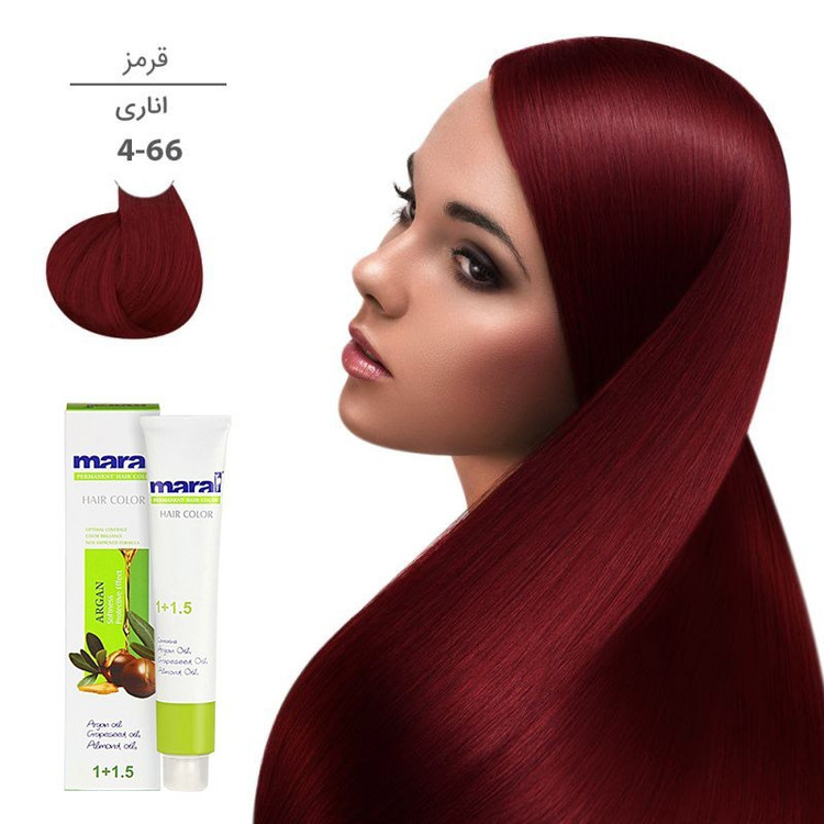 رنگ مو حاوی روغن آرگان و بادام سری قرمز 100میل رنگ 4.66 قرمز اناری مارال