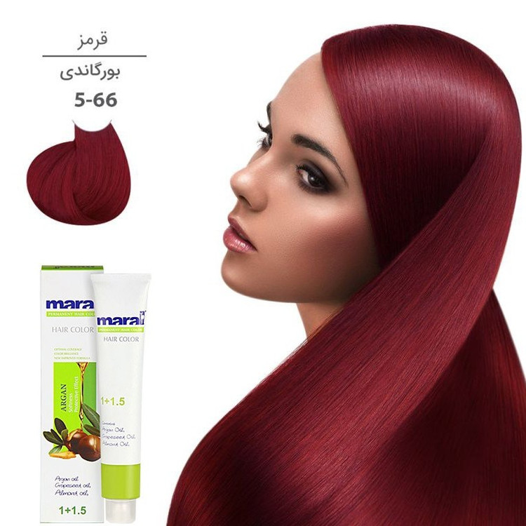 رنگ مو حاوی روغن آرگان و بادام سری قرمز 100میل رنگ 5.66 قرمز بورگاندی مارال