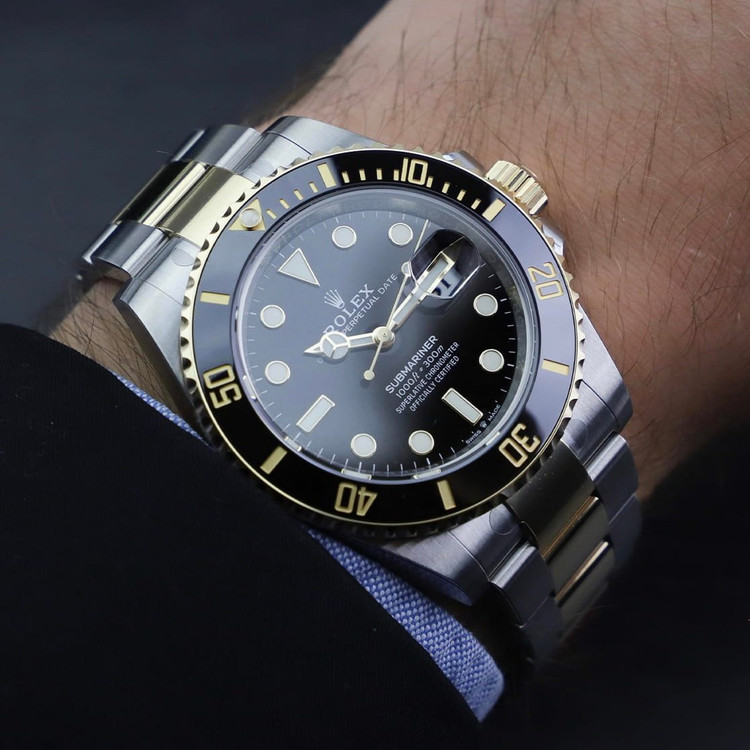 ساعت مچی رولکس ساب مارینر سیلور طلایی صفحه مشکی (تک و ست) Rolex Submariner Silver Golden
